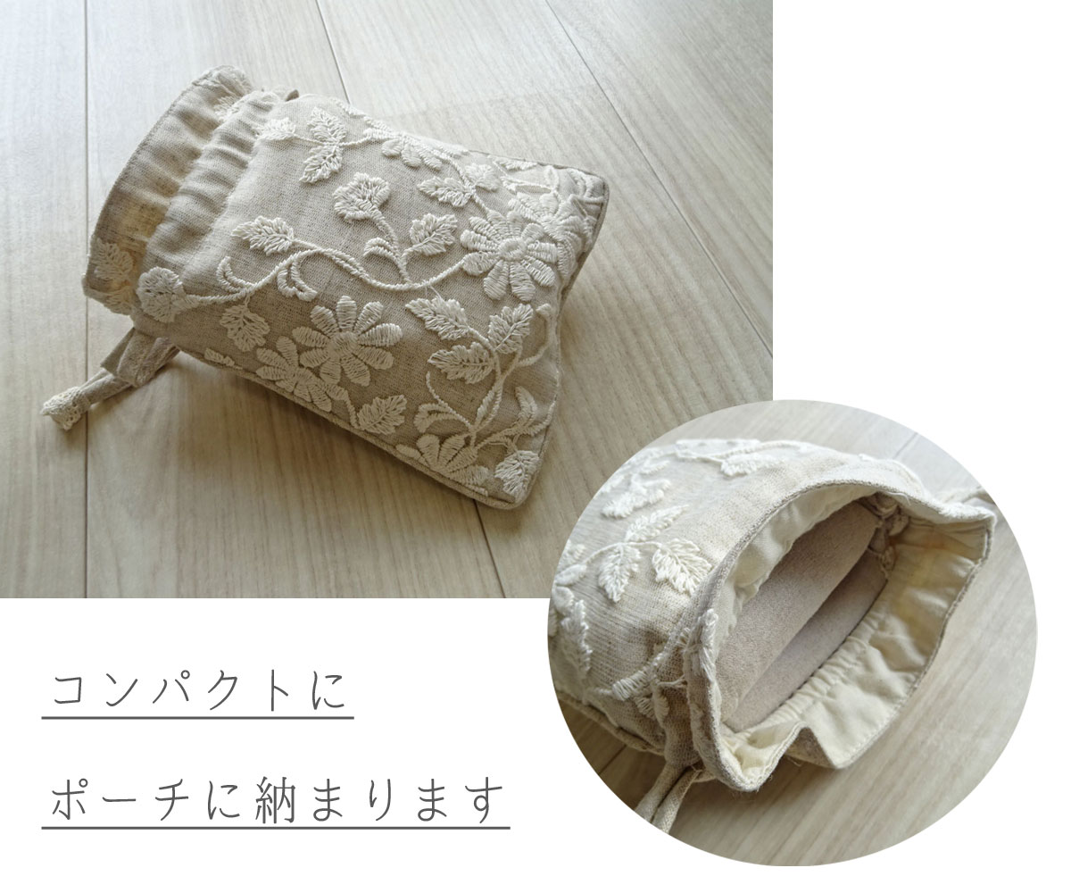 あす楽 人気!店長お勧め 薄軽スリッパ バブーシュ 『携帯スリッパ(ポーチ付き)』 洗える 秋 旅行 素足でも おしゃれ に履ける 折りたたみ ルームシューズ リネン 麻 刺繍 チュールレース ナチュラル シンプル 北欧イメージのお花刺繍