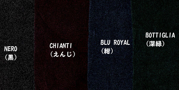 カラーは4色 ●NERO(黒) ●BLU ROYAL(紺) ●BOTTIGLIA(深緑) ●CHIANTI(えんじ) サイズは下記サイズ表を参考にご選択ください。