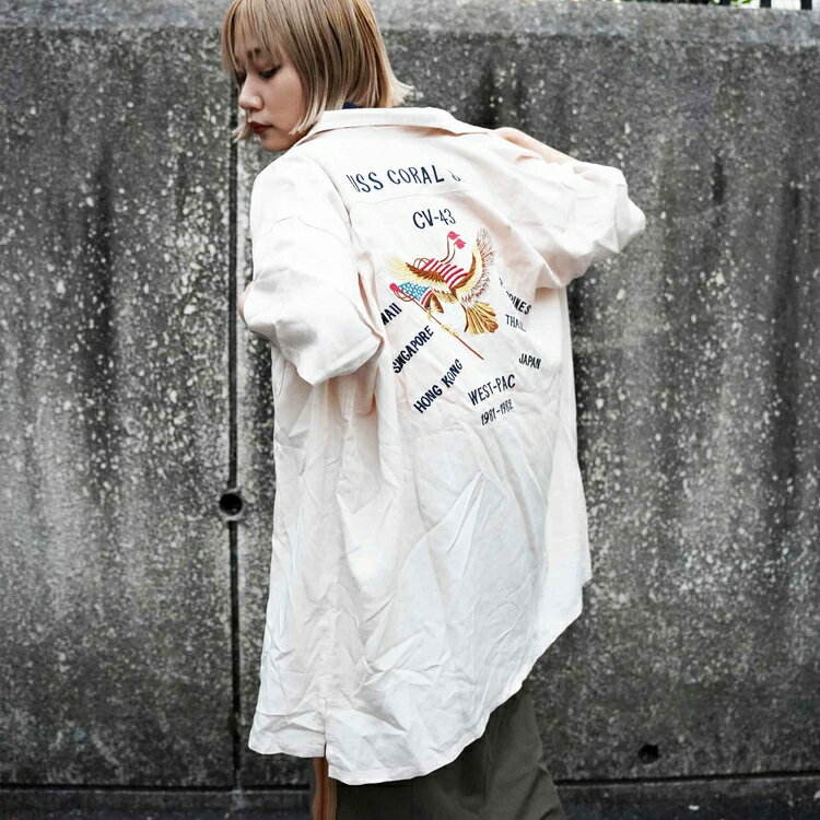 背中の刺繍はU.S. NAVYの航空母艦、USS CORAL SEAの1980年代初頭の西太平洋クルーズのモチーフを細かい刺繍で表現しています。