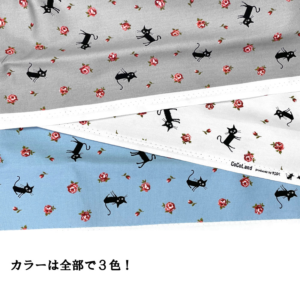 キュートなクロネコとエレガントなバラのコントラストがいい感じ! 落ち着いた色合いでオトナカワイイ! ハンドメイド初心者にも扱いやすい、オ−ルマイティでしっかりしたオックス生地です。