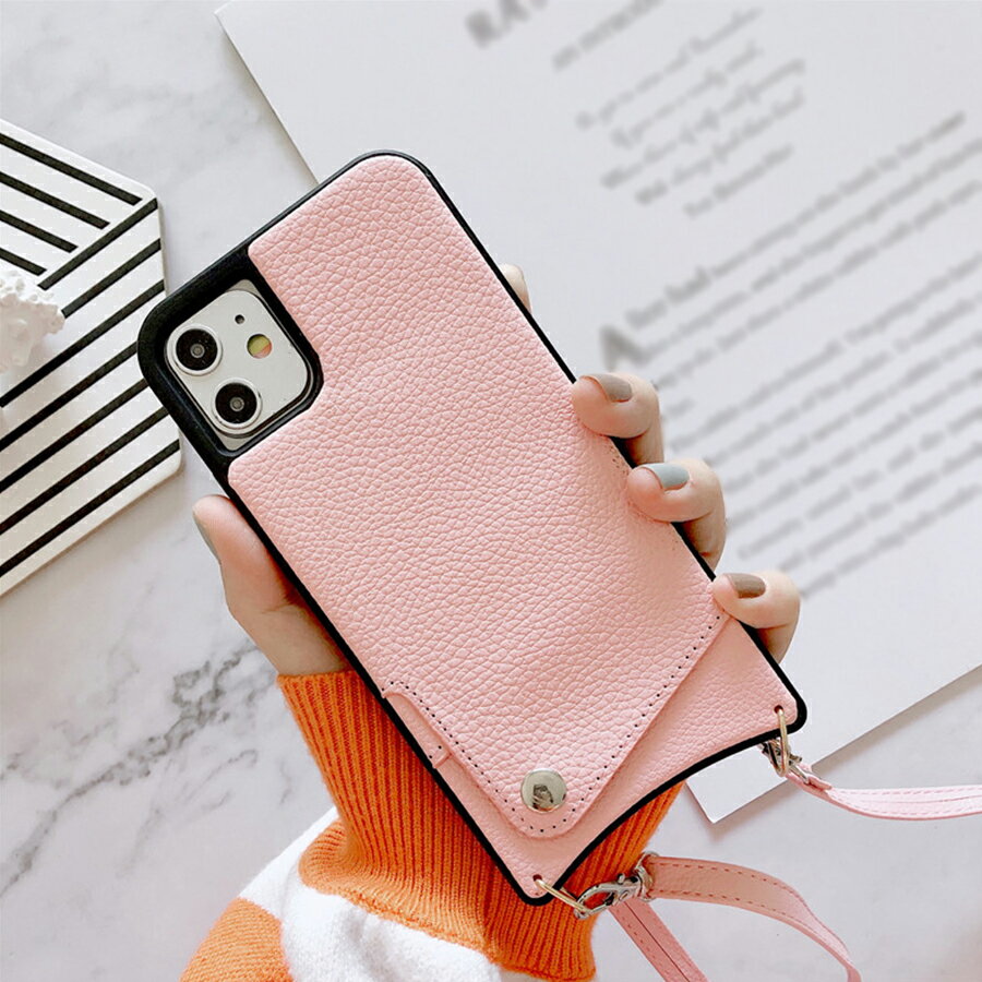 iPhone 12/12Pro 背面ケース ケース カバー クロスボディストラップ レザー ショルダー ロープ ネック カード収納 おしゃれ 可愛い シンプル レッド ブラック シルバー ピンク