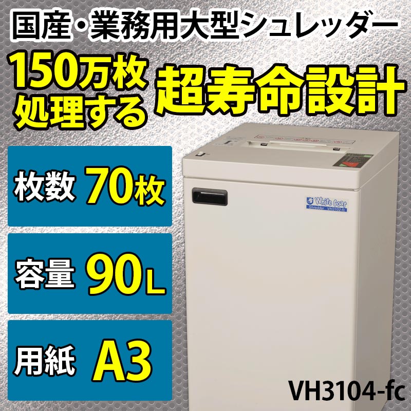 ホワイトゴートシュレッダー VH3104-fcは、当店でも自信を持っておススメできる、超高耐久、超寿命なシュレッダーです。